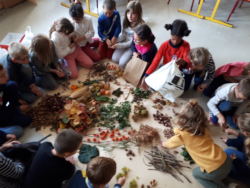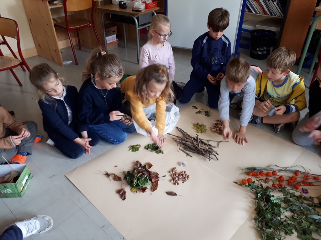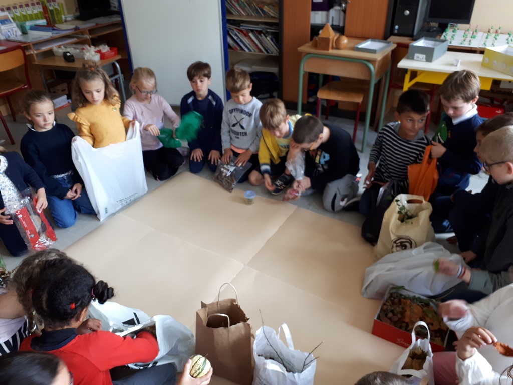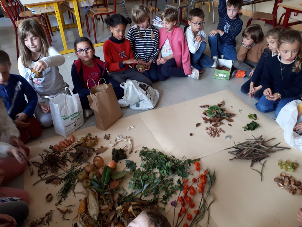 Vendredi 15 octobre, nous avons apporté des éléments de l’automne puis nous les avons présentés.